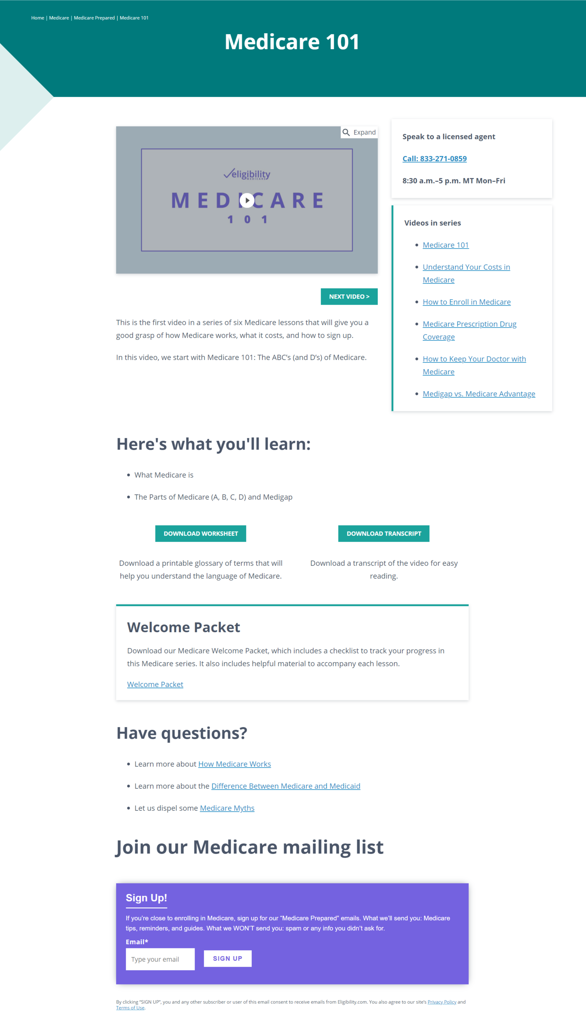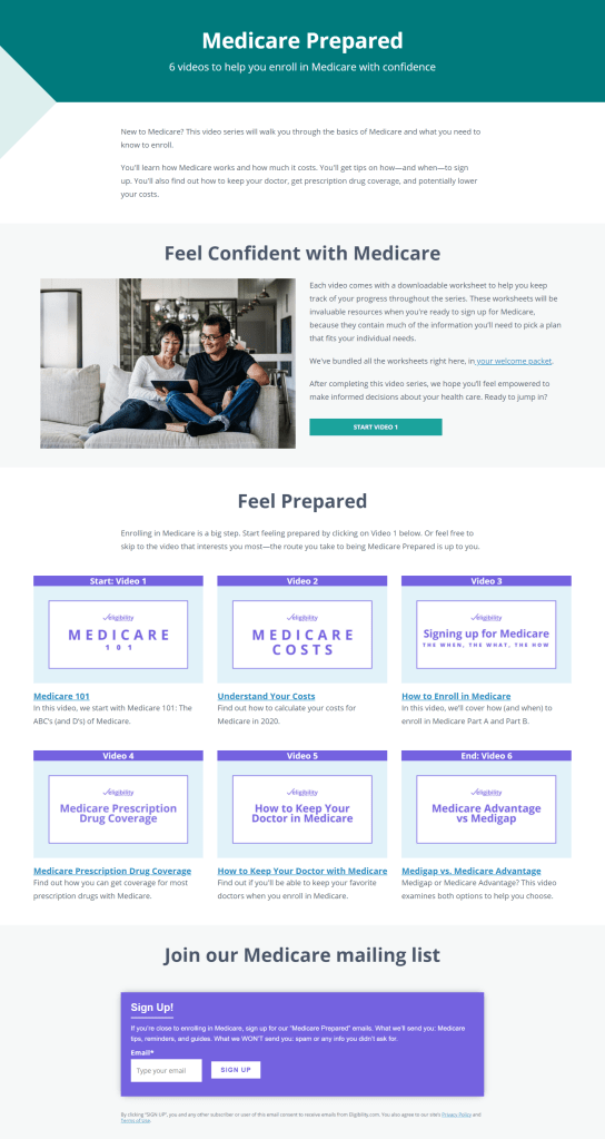 I wrote the copy for the hub page and designed the layout. We wanted the copy to be empowering for seniors and not use common language like “Medicare is confusing.”